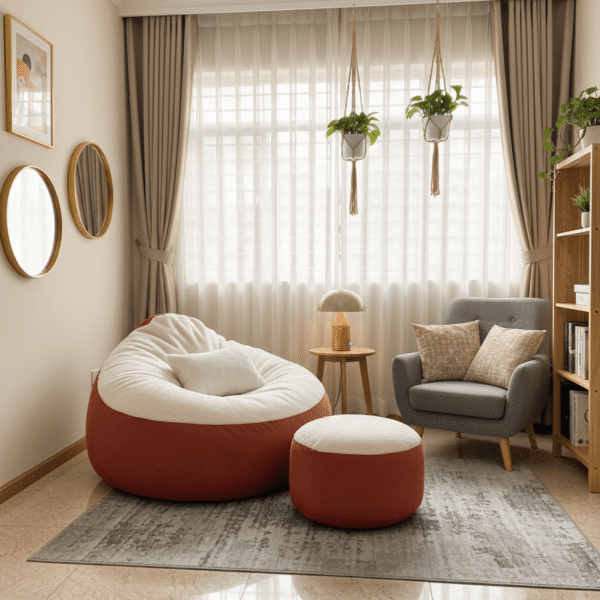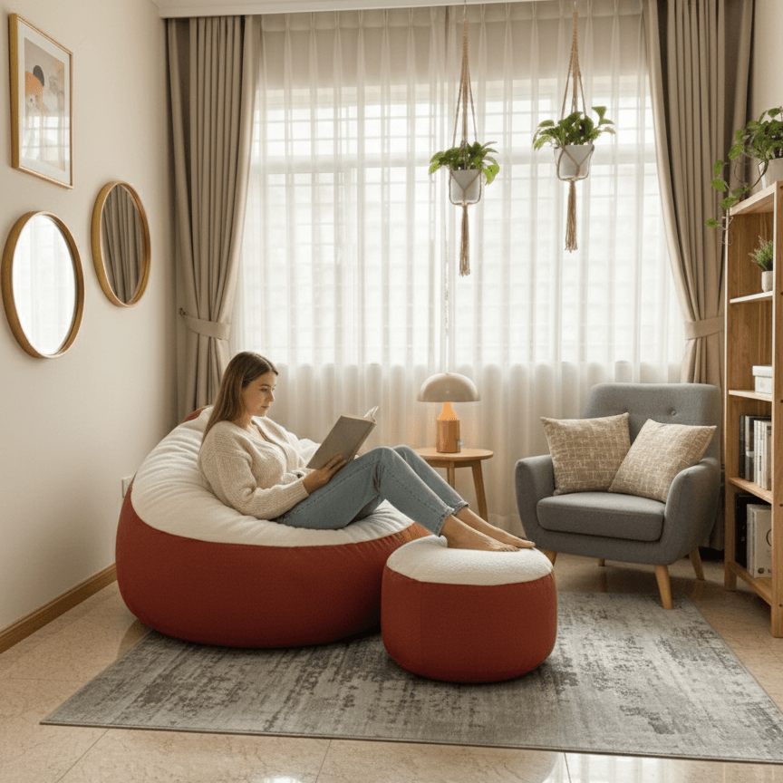 - Bean Bag and Footrest – Premium Quality EPS Beans (5 mm Taiwanese) and Cube Cut Memory Foam (3/4 inch) Filling