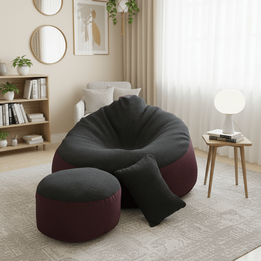- Bean Bag and Footrest – Premium Quality EPS Beans (5 mm Taiwanese) and Cube Cut Memory Foam (3/4 inch) Filling