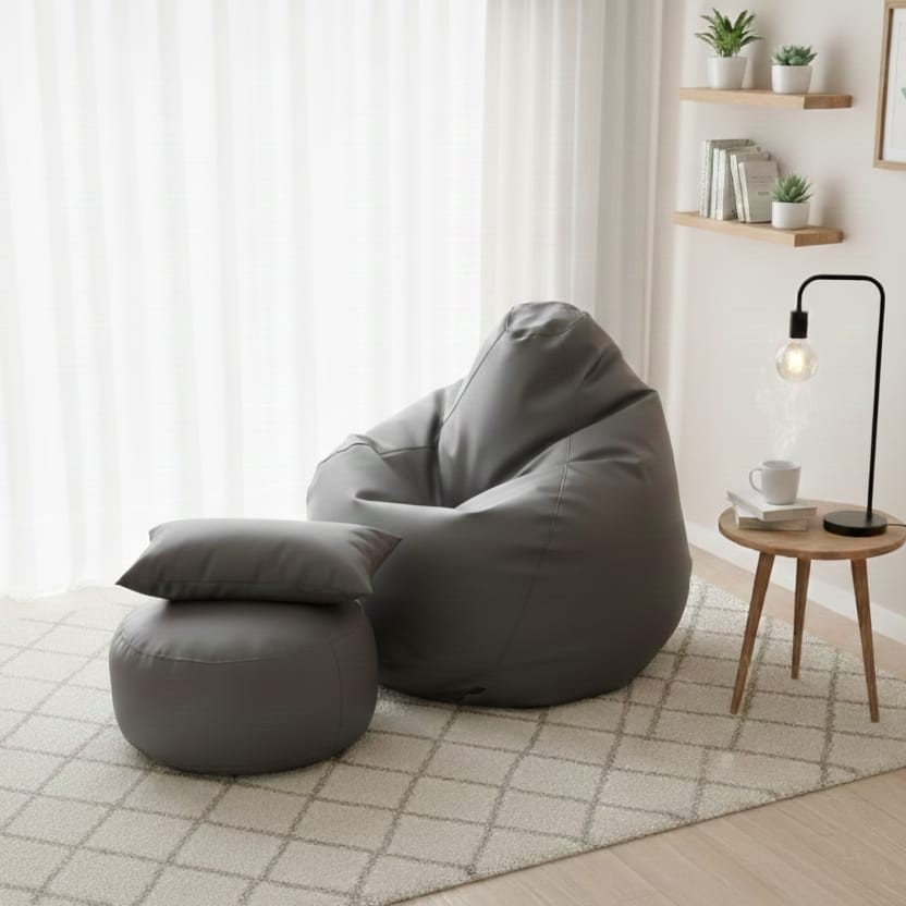Faux Leather Xxl Pear Shape 3pcs Combo Bean Bag-Ash