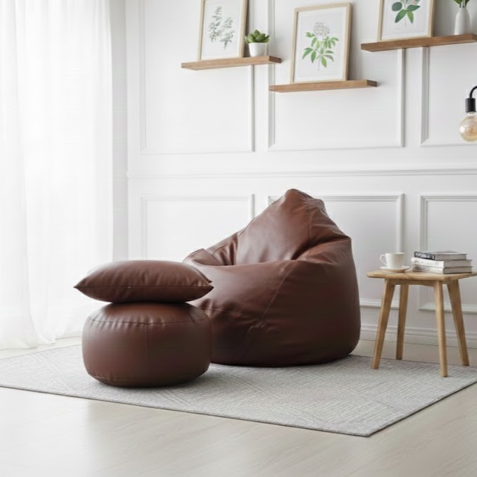 Faux Leather Xxl Pear Shape 3pcs Combo Bean Bag- Brown