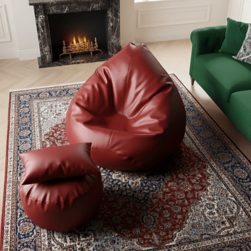 Faux Leather Xxl Pear Shape 3pcs Combo Bean Bag-Maroon