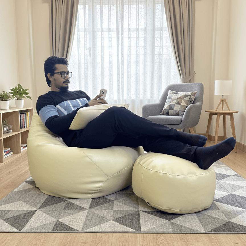 • Bean Bag and Footrest – Premium Quality EPS Beans (5 mm Taiwanese) and Cube Cut Memory Foam (3/4 inch) Filling