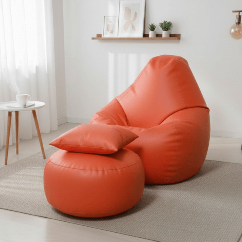 Faux Leather Xxl Pear Shape 3pcs Combo Bean Bag- Orange
