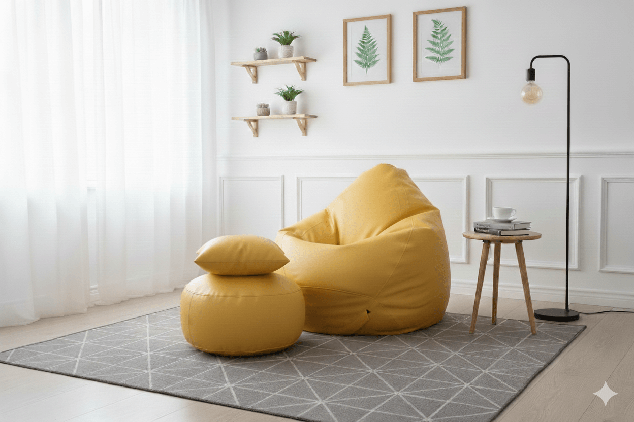 Faux Leather Xxl Pear Shape 3pcs Combo Bean Bag- Yellow