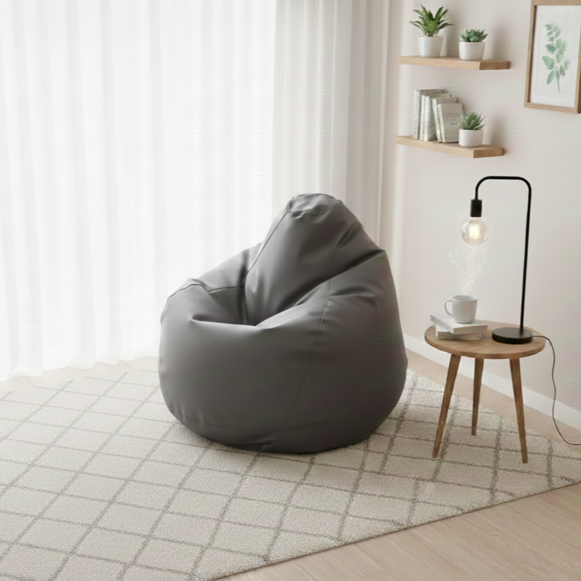 Faux Leather Xxl Pear Shape Single Bean Bag- Ash