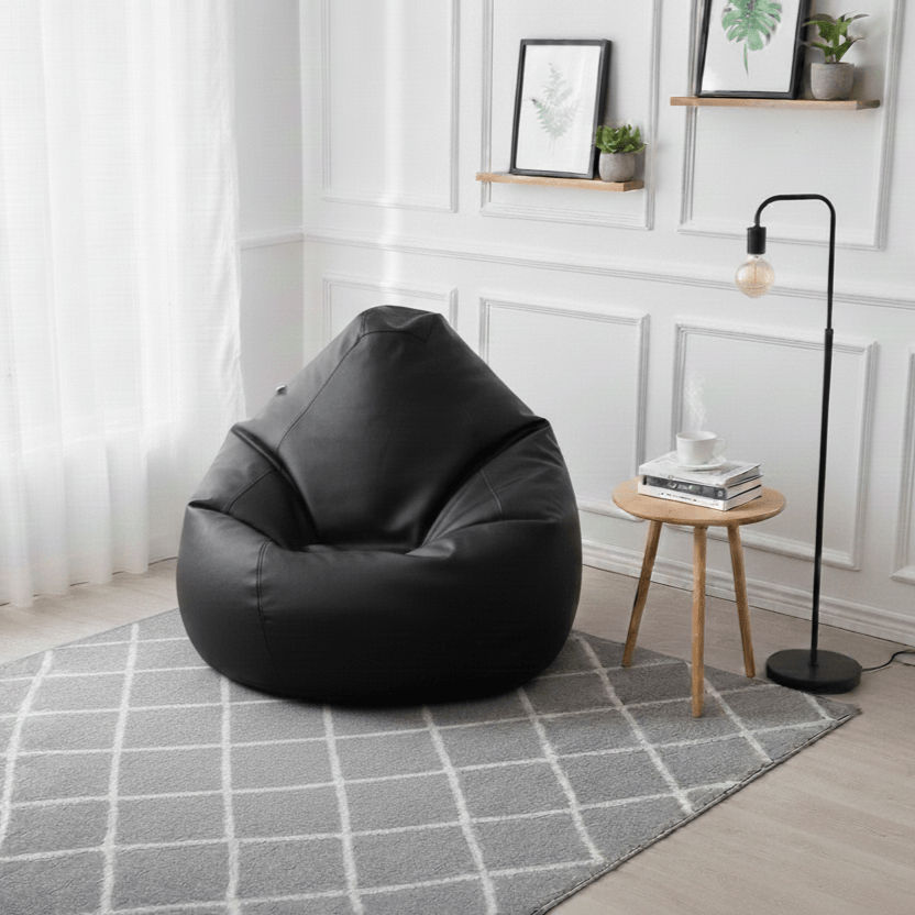 Faux Leather Xxl Pear Shape Single Bean Bag- Black
