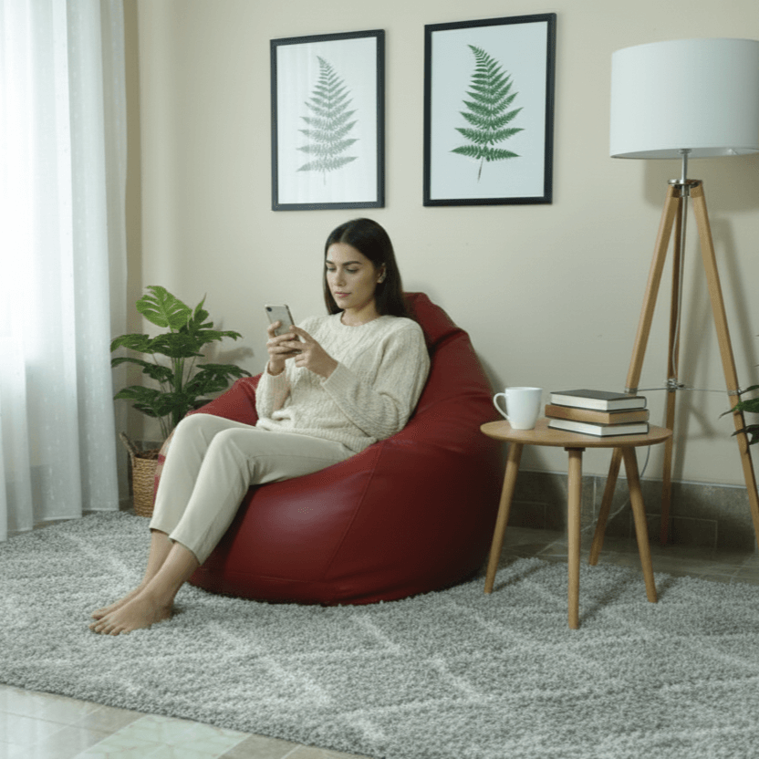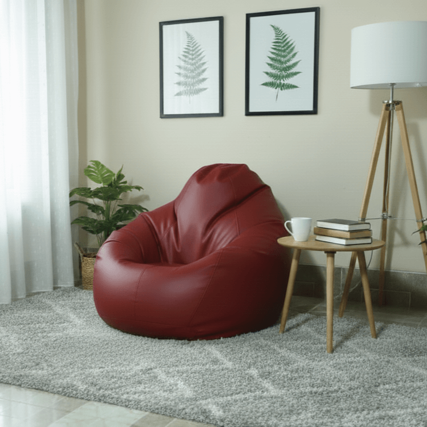 Faux Leather Xxl Pear Shape Single Bean Bag-Maroon