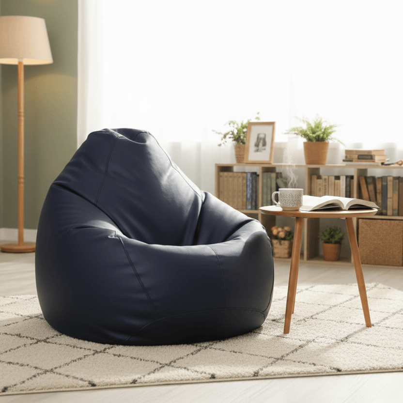 Faux Leather Xxl Pear Shape Single Bean Bag-Navy Blue