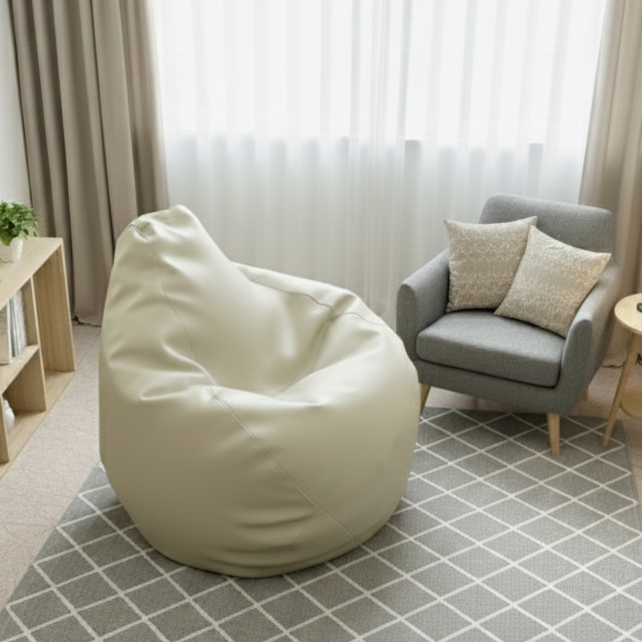 Faux Leather Xxl Pear Shape Single Bean Bag-Off White