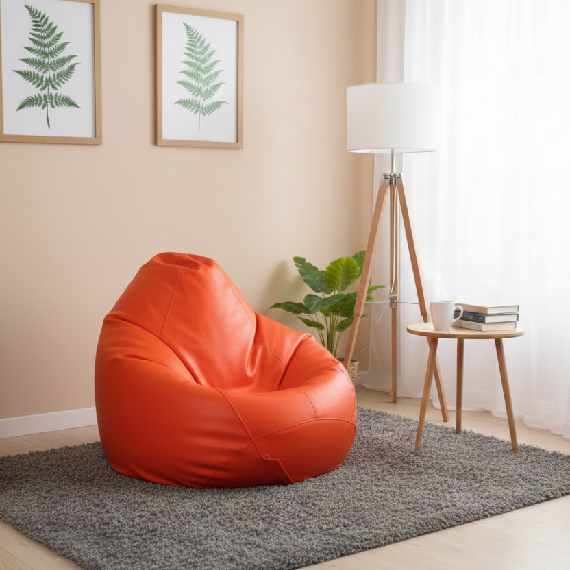 Faux Leather Xxl Pear Shape Single Bean Bag-Orange
