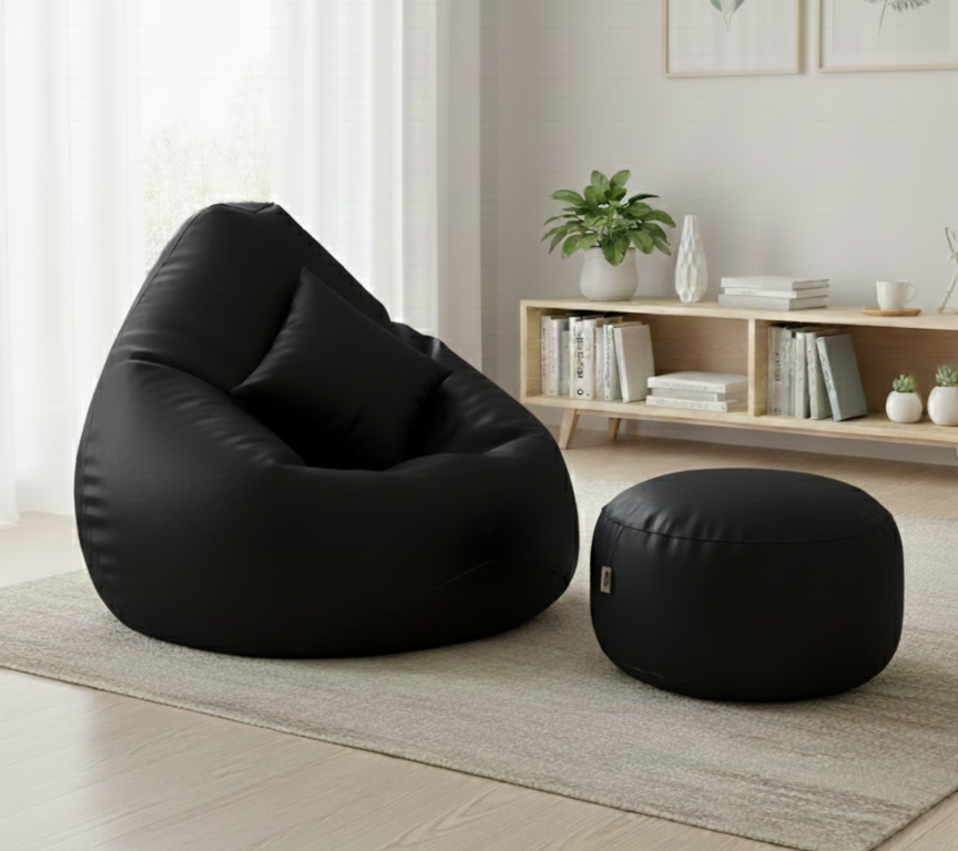 Faux Leather Xxxl Pear Shape 3pcs Combo Bean Bag-Black