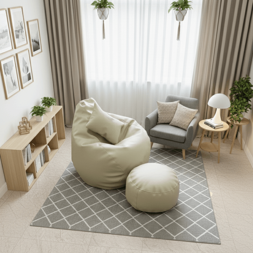 - Bean Bag and Footrest – Premium Quality EPS Beans (5 mm Taiwanese) and Cube Cut Memory Foam (3/4 inch) Filling