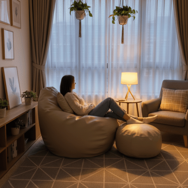 - Bean Bag and Footrest – Premium Quality EPS Beans (5 mm Taiwanese) and Cube Cut Memory Foam (3/4 inch) Filling