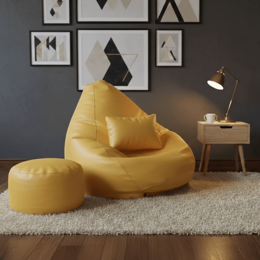 Faux Leather Xxxl Pear Shape 3pcs Combo Bean Bag-Yellow