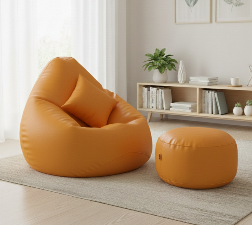 - Bean Bag and Footrest – Premium Quality EPS Beans (5 mm Taiwanese) and Cube Cut Memory Foam (3/4 inch) Filling