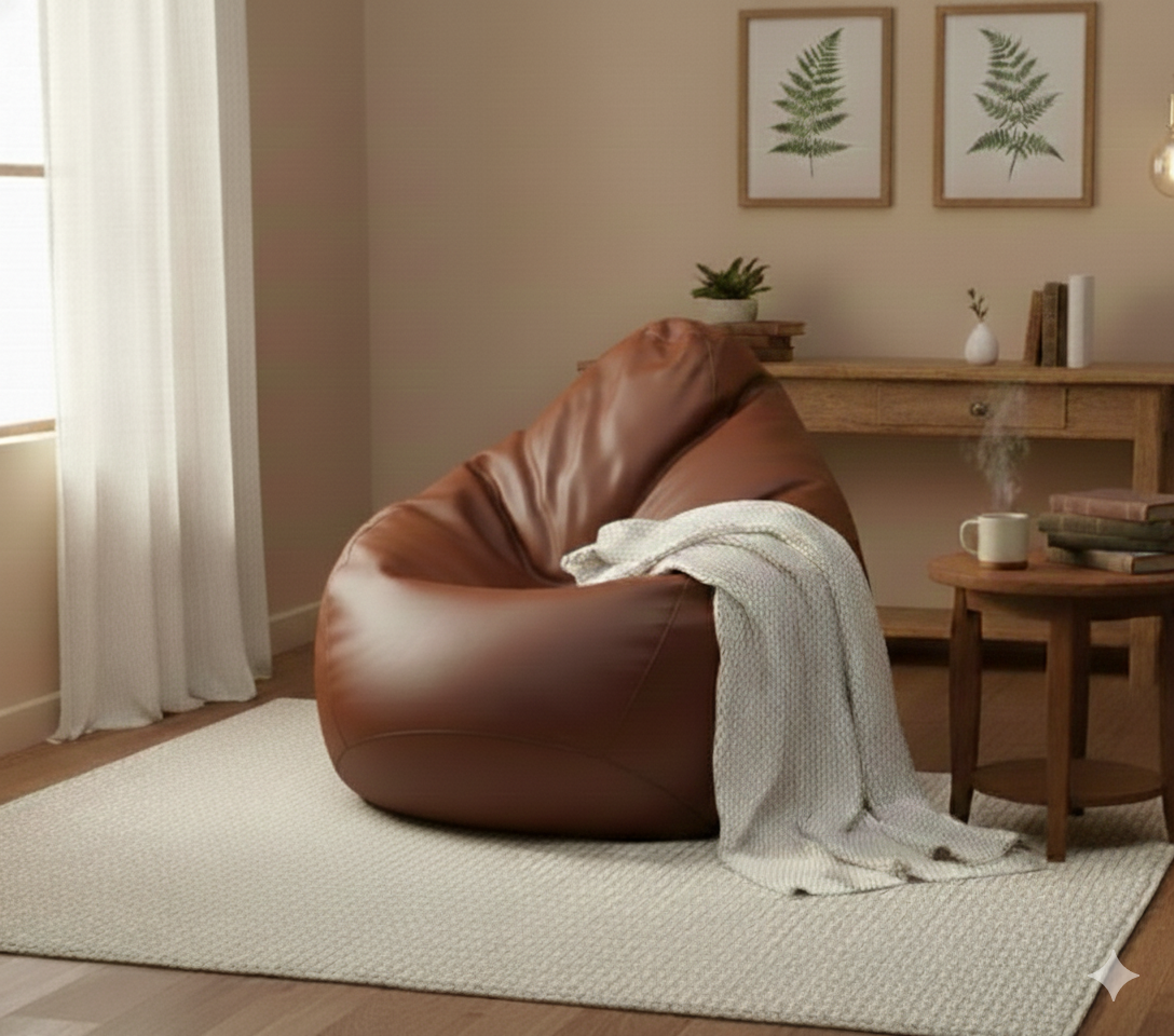 Faux Leather Xxxl Pear Shape Single Bean Bag-Brown