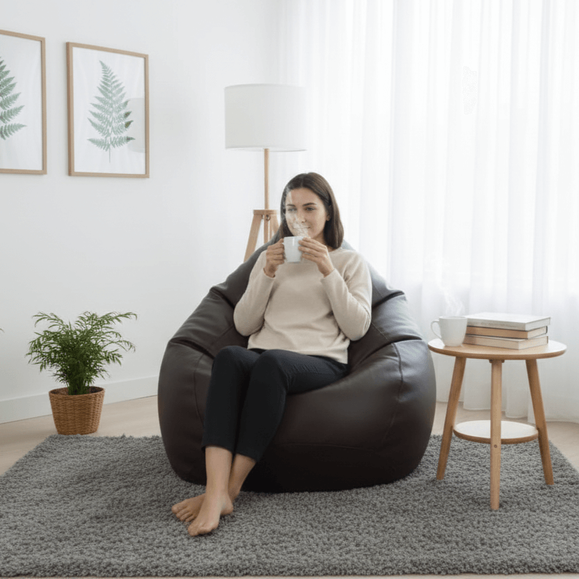 Faux Leather Xxxl Pear Shape Single Bean Bag-Deep Brown