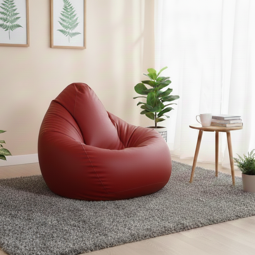 Faux Leather Xxxl Pear Shape Single Bean Bag-Maroon