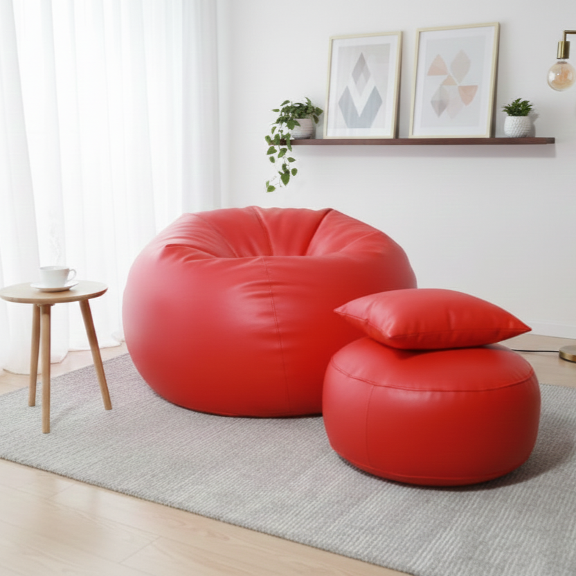 Faux Leather Xxxl Pumpkin Shape 3pcs Combo Bean Bag-Red